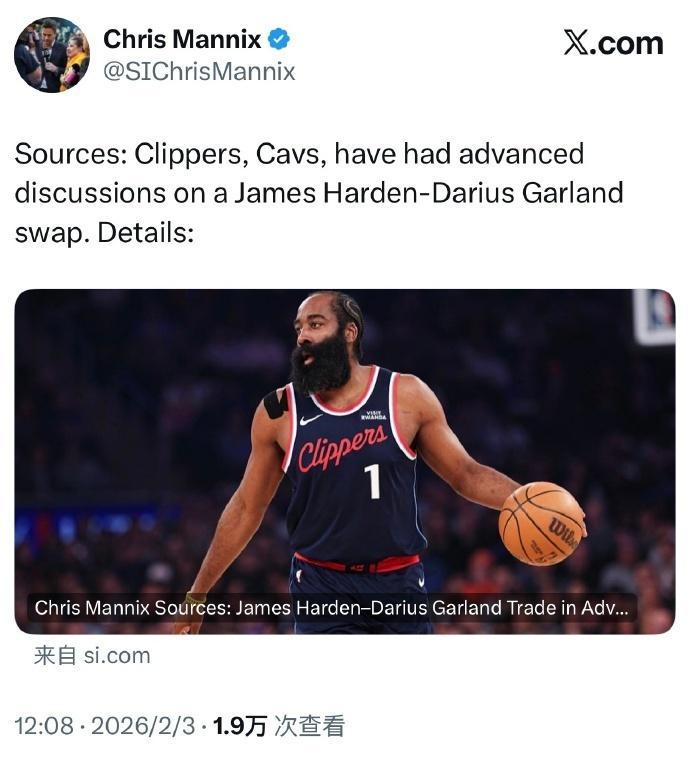 如今根据《体育画报》名记Chris Mannix报道,快船与骑士正深入讨论用哈登换加兰的交易,但其中尚且存在薪资匹配、选秀权补偿、球员意愿等关键障碍因素。