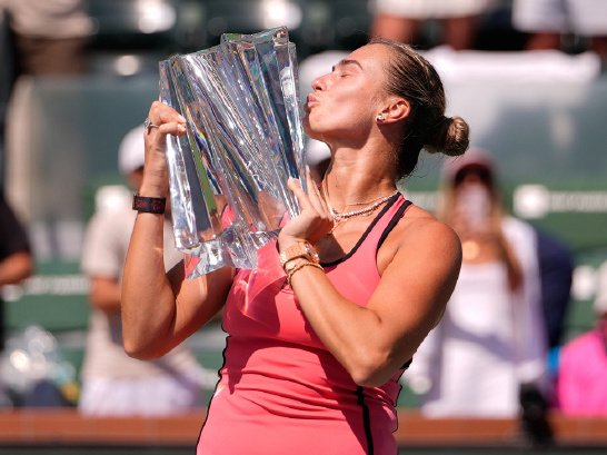 我们再回到赛场。北京时间今晨,ATP/WTA1000印第安维尔斯站精彩落幕。在率先进行的女单决赛中,头号种子、世界第一萨巴伦卡在3-6先丢一盘的情况下展开反击,最终在决胜盘抢七中挽救一个冠军点,以6-3 7-6(6)艰难逆转3号种子、前赛会冠军莱巴金娜,三进决赛终于如愿登顶,拿到了职业生涯第10个1000赛冠军,也终结了对莱巴金娜的决赛四连败。